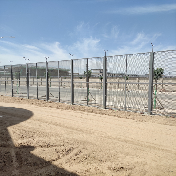 2、監(jiān)獄警戒區(qū)防護(hù)網(wǎng)立柱間距3m(也可根據(jù)實(shí)際情況調(diào)整)邊框與立柱采用螺栓固定邊耳式連接,邊耳均為40mm*40mm*6mm扁鐵,邊耳螺孔可調(diào),調(diào)節(jié)距離不小于15mm;邊耳固定螺栓為直徑14mm*50mm全絲熱鍍鋅安全螺栓、螺母,每片網(wǎng)單邊連接點(diǎn)為6個以上。隔離網(wǎng)設(shè)計要求整體連貫一致,框網(wǎng)方正,對角線誤差不大于2cm。