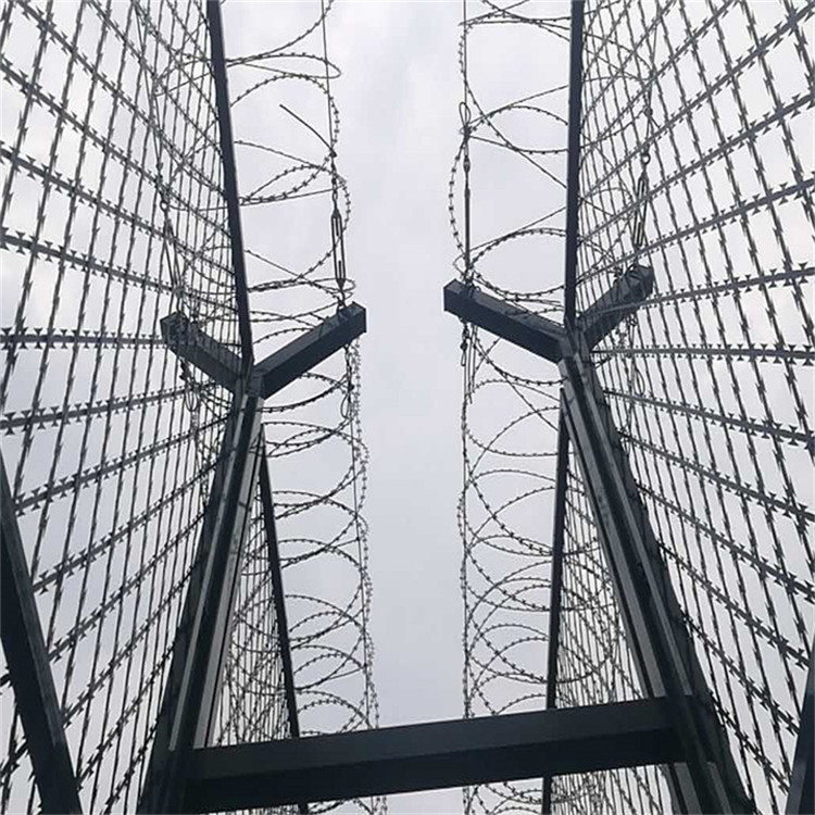 監(jiān)獄焊接刀片刺網(wǎng)的焊接制作方法,刀刺隔離網(wǎng)建設(shè)于監(jiān)獄、看守所的內(nèi)外墻地面及高墻之上,網(wǎng)墻內(nèi)側(cè)