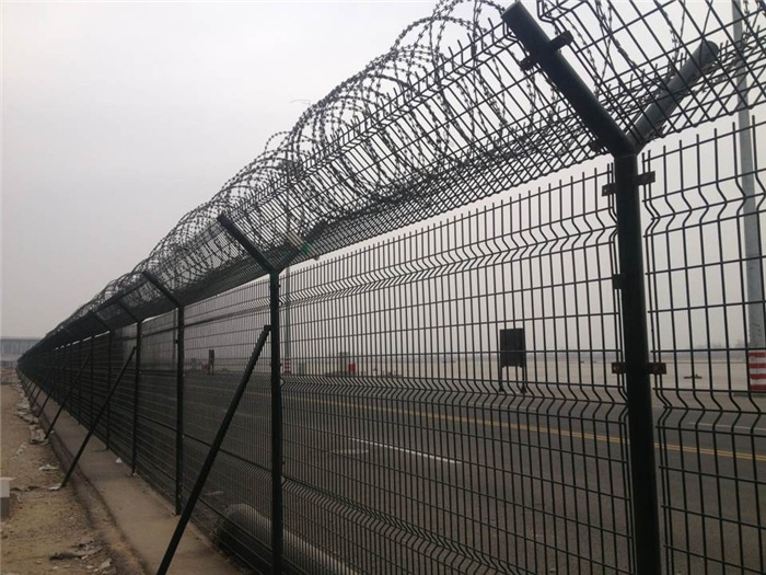 機(jī)場(chǎng)Y形柱防攀爬隔離網(wǎng)是一種用于機(jī)場(chǎng)周邊的安全防護(hù)設(shè)施,主要用于隔離機(jī)場(chǎng)與外界環(huán)境,確保機(jī)場(chǎng)的安全運(yùn)營(yíng)。機(jī)場(chǎng)圍欄網(wǎng)通常由Y形柱和防攀爬隔離網(wǎng)組成,同時(shí)還可以配備機(jī)場(chǎng)外圍隔離柵。