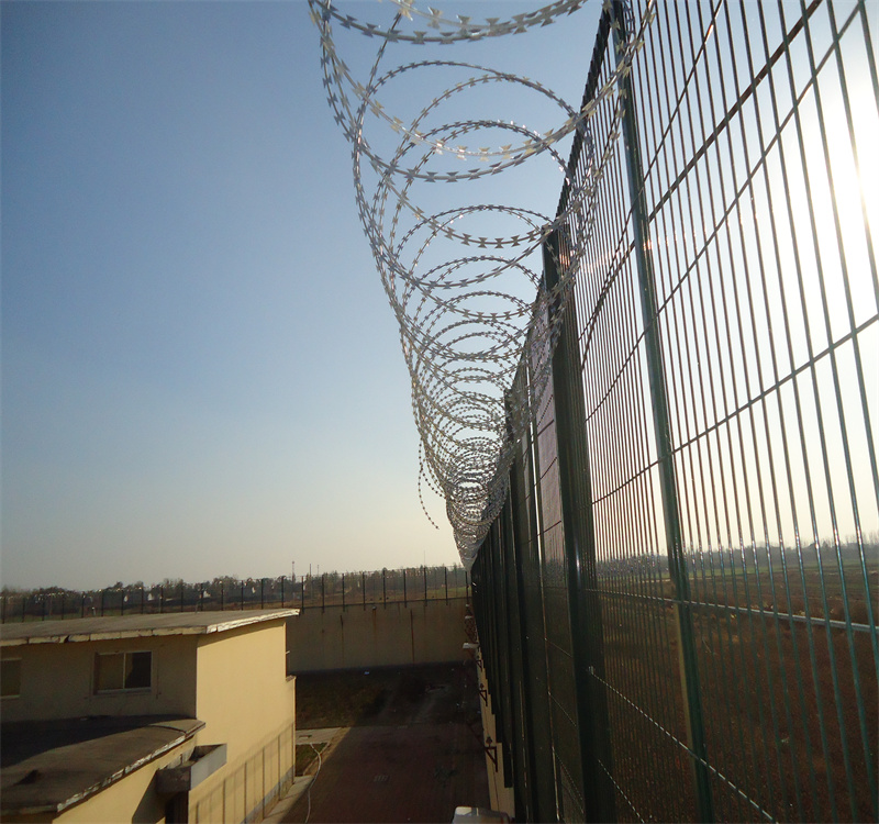 4. 鋼網(wǎng)圍墻:這種類型的監(jiān)獄鋼網(wǎng)墻使用鋼絲網(wǎng)作為圍墻的主要材料,鋼絲網(wǎng)通過(guò)焊接或綁扎在鋼管框架上。鋼網(wǎng)圍墻具有較高的透明度和通風(fēng)性,適用于需要較好的視野和通風(fēng)條件的監(jiān)獄。