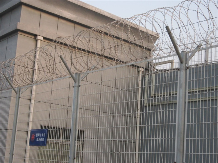 司法機(jī)構(gòu):在司法領(lǐng)域,304不銹鋼刀刺網(wǎng)由于其防攀爬和難以逾越的特性,常用于監(jiān)獄、看守所等地的內(nèi)外墻地面及高墻之上,形成一道高不可攀、難以逾越的隔離障礙,配合高壓電網(wǎng)、監(jiān)控報(bào)警設(shè)備等,確保這些機(jī)構(gòu)的安全。