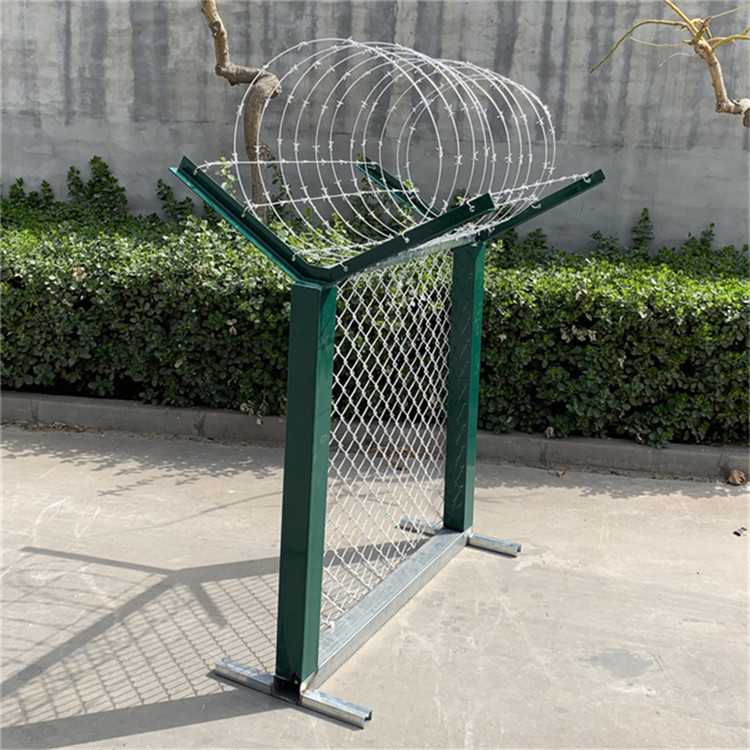 鋁包鋼刺絲滾籠是使用一種新型原材料鋁包鋼絲制作而成的機場圍界網(wǎng)產(chǎn)品,鋁包鋼絲是將鋼絲芯線外層包裹一層鋁作為外層防腐材料,它比傳統(tǒng)的PE或者PVC包塑鋼絲防腐性能更強,通常可以延長機場圍界產(chǎn)品使用壽命10-15年以上,適合于沿??諝鉂駶櫢g性強的地區(qū)和環(huán)境較惡劣的沙漠邊緣地帶。鋁包鋼絲機場圍界網(wǎng)孔一般為50*50mm,絲徑5mm,頂部可搭配有V字叉和刀刺滾籠以加強防護能力。它還有一個優(yōu)點就是鋁層是與鋼絲一起經(jīng)機械拉拔到一起的,不易脫落。