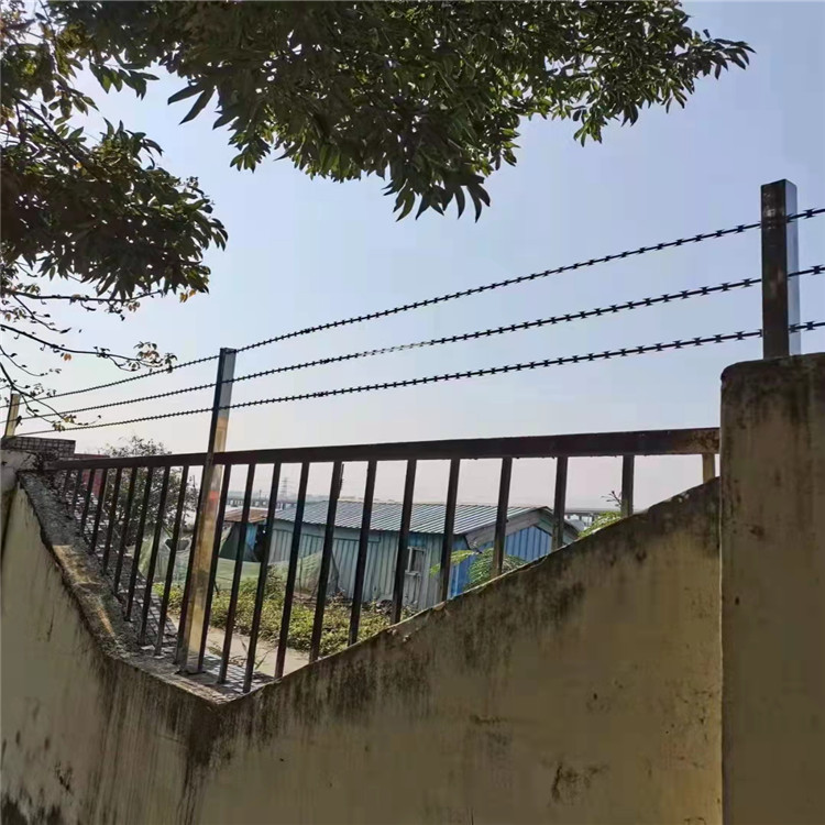 直條型刀片刺網(wǎng)產(chǎn)品類似于鐵絲刺繩,只不過(guò)刺的位置為刀片狀,一般3米長(zhǎng)一根,立柱間距也為三米,其長(zhǎng)度也可依客戶要求制作。安裝完成能夠構(gòu)建一道防護(hù)墻,深受監(jiān)獄等防護(hù)性的場(chǎng)所使用,其外觀顏色可以隨意搭配,具有美觀防護(hù)作用。