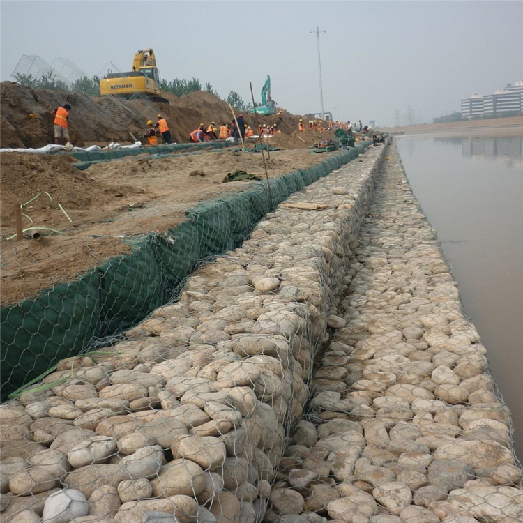鐵絲石籠網(wǎng)是工程技術(shù)人員為了實現(xiàn)工程與生態(tài)環(huán)境相結(jié)合而研究出來的一種新型防護結(jié)構(gòu),高強度鍍鋅鐵絲編制的不同大小的矩形籠子,裝滿石塊應用到景觀工程和水利工程的岸坡防護后,它的柔性結(jié)構(gòu)特點可人為設(shè)計搭建成和周圍圍環(huán)境相結(jié)合的形象景觀,例如石籠階梯,石籠墻等,隨著我國越來越重視生態(tài)自然綠色環(huán)境,熱鍍鋅石籠網(wǎng)的滲透性特點,既可起到凈化水的作用,石籠內(nèi)石塊間的縫隙也可人為和自然因素的雙重作用下充填泥土和自然草本種子,經(jīng)過灑水和天然雨水、河水的滋潤,植物種子逐漸在石塊之間的泥土中生根發(fā)芽,茁壯生長,根系牢牢固定石塊和泥土。如此即可以對邊坡實現(xiàn)防護和綠化的目的,改善生態(tài)、保持水土的效果也十分顯著。