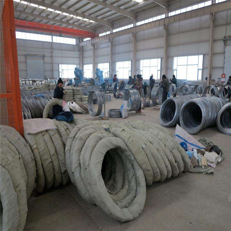 ?。?)、高鐵刺絲滾籠采用刀片刺繩繞圈后相臨兩圈每隔120°用刺絲連接卡固定,張開后形成蛇腹網(wǎng)狀,閉合后刀片刺繩圈徑為50cm,張開后每交叉圈安裝間距20cm,直徑不小于45cm。