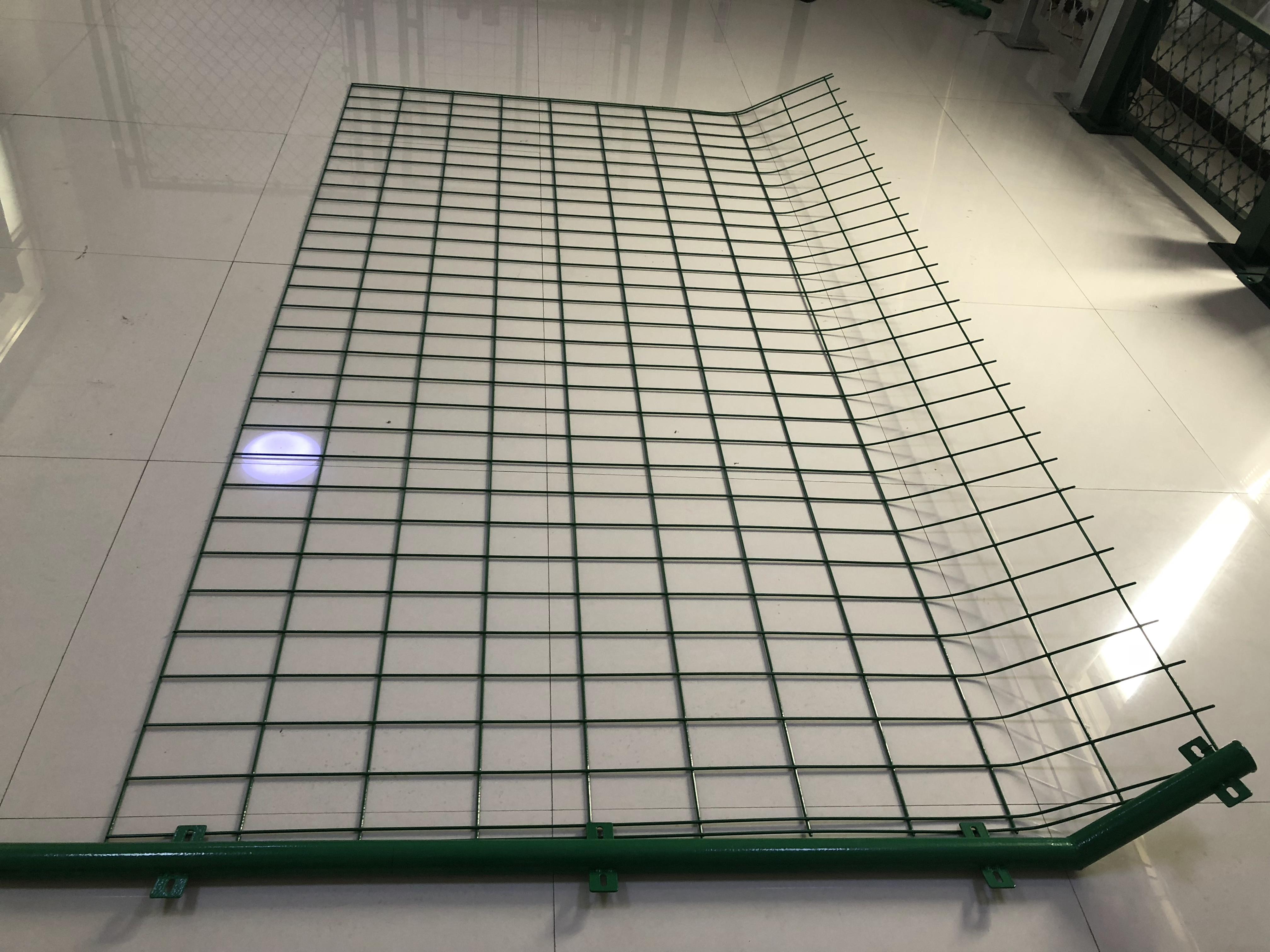 生產(chǎn)工藝:采用盤條拉絲—預(yù)直、切斷—全自動數(shù)控排焊機(jī)自動焊接成型(編織) —折彎/卷圈—--固定邊框裁剪、焊接—-鋼管支柱裁剪—-連接附件焊接—法蘭底座焊接—質(zhì)檢—表面處理(鍍鋅、噴塑、浸塑)—二次質(zhì)檢—檢驗(yàn)合格,準(zhǔn)許出廠—裝車運(yùn)輸—交付用戶。