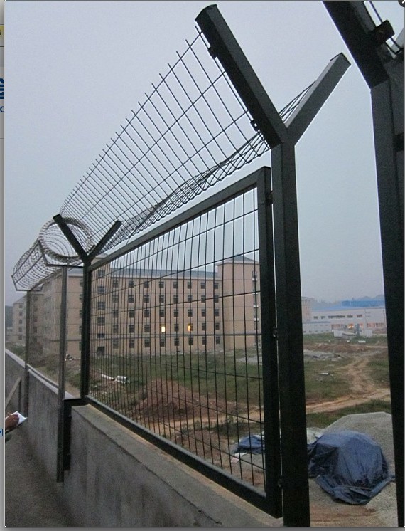 監(jiān)獄隔離網(wǎng)設(shè)計(jì)要求整體固定連貫一致,標(biāo)準(zhǔn)生產(chǎn)質(zhì)量,框網(wǎng)方正,對(duì)角線誤差不大于2cm。監(jiān)獄隔離網(wǎng)網(wǎng)面安裝離地距離5-8cm,框網(wǎng)與立柱采用螺栓固定邊耳式連接網(wǎng)頁(yè)每邊與立柱連接點(diǎn)不少于六處。立柱采用水泥澆灌預(yù)埋式,規(guī)格為600*600*600mm (長(zhǎng)*寬*深),底座四角預(yù)制四個(gè)直徑25mm熱鍍鋅螺栓(每個(gè)螺栓中心為距基礎(chǔ)兩邊150mm的交叉點(diǎn)),從頂端往下絲長(zhǎng)不小于150mm (與地籠焊為一體),螺栓高于底座平面50mm (底座平面應(yīng)與所在位置最終地面高度在同一水平高度),螺栓間距為300mm*300mm,與立柱法蘭盤螺孔相適應(yīng)。立柱保持豎直、不歪斜。立柱做調(diào)直處理,每20米校正,每100米偏差角度不大于5°,安裝整體無(wú)歪斜,隔離網(wǎng)整體呈直線(除地形需要做出適宜角度外)。
