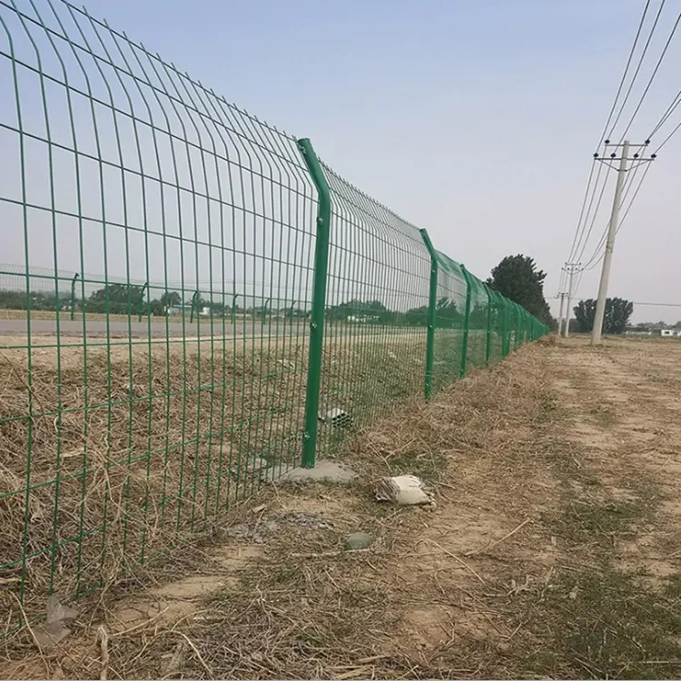 雙邊絲三角折彎護欄網成本介于雙邊護欄網和三角折彎護欄網兩者之間,它的網孔大小比較靈活,與雙邊護欄網無異,唯一區(qū)別是具有三角折彎及加強筋,價格高也就高在這兒。兩者的立柱也有稍微區(qū)別,雙邊護欄網使用的立柱有時頂部帶有30度的折彎有時不帶。雙邊絲三角折彎護欄網則不帶,除非頂部安裝刺繩時使用帶彎度的立柱,而且以Y型立柱居多。