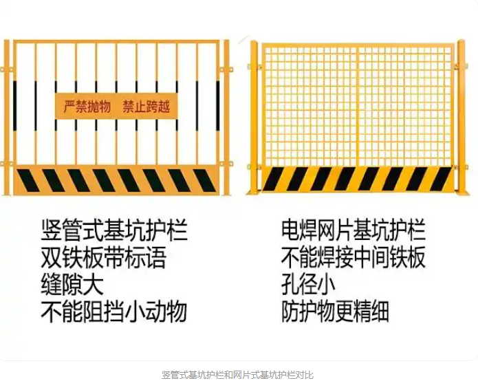豎管基坑分為單板和雙板,雙板就是可以噴涂警示標語的;網(wǎng)片式基坑護欄現(xiàn)貨基本上沒有雙板的,除非是定制款,因為網(wǎng)片是焊接在框架后面的,中間的鐵板不容易焊接在上面,要不就是采用長度和基坑護欄長度一樣的鐵板,這樣基本都是定制款。