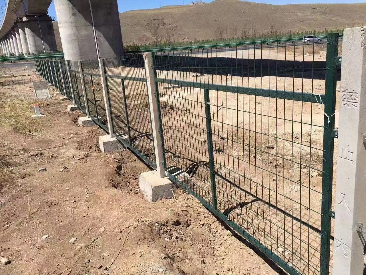 常見的鐵路護(hù)欄網(wǎng)有矩形管防護(hù)柵欄、角鐵防護(hù)柵欄、鋼筋混凝土防護(hù)柵欄等。