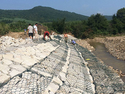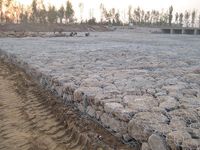 雷諾護(hù)墊是厚度在0.17-0.3m的網(wǎng)箱結(jié)構(gòu),在現(xiàn)場(chǎng)用于裝填石頭。主要用作河道、岸坡、路基邊坡護(hù)坡結(jié)構(gòu)。既可防止河岸遭水流、風(fēng)浪侵襲而破壞,又實(shí)現(xiàn)了水體與坡下土體間的自然對(duì)流交換功能,達(dá)到生態(tài)平衡。坡上植綠可增添景觀、綠化效果。