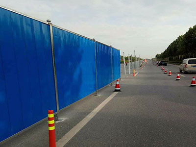 圍擋施工完畢,板與板之間銜接平順,直線要在一條直線上;板與板不得留有縫隙,即在場(chǎng)外不能看見(jiàn)場(chǎng)內(nèi)施工。圍擋沿線設(shè)置紅燈或者隔段用安全反光錐用于夜間警示。