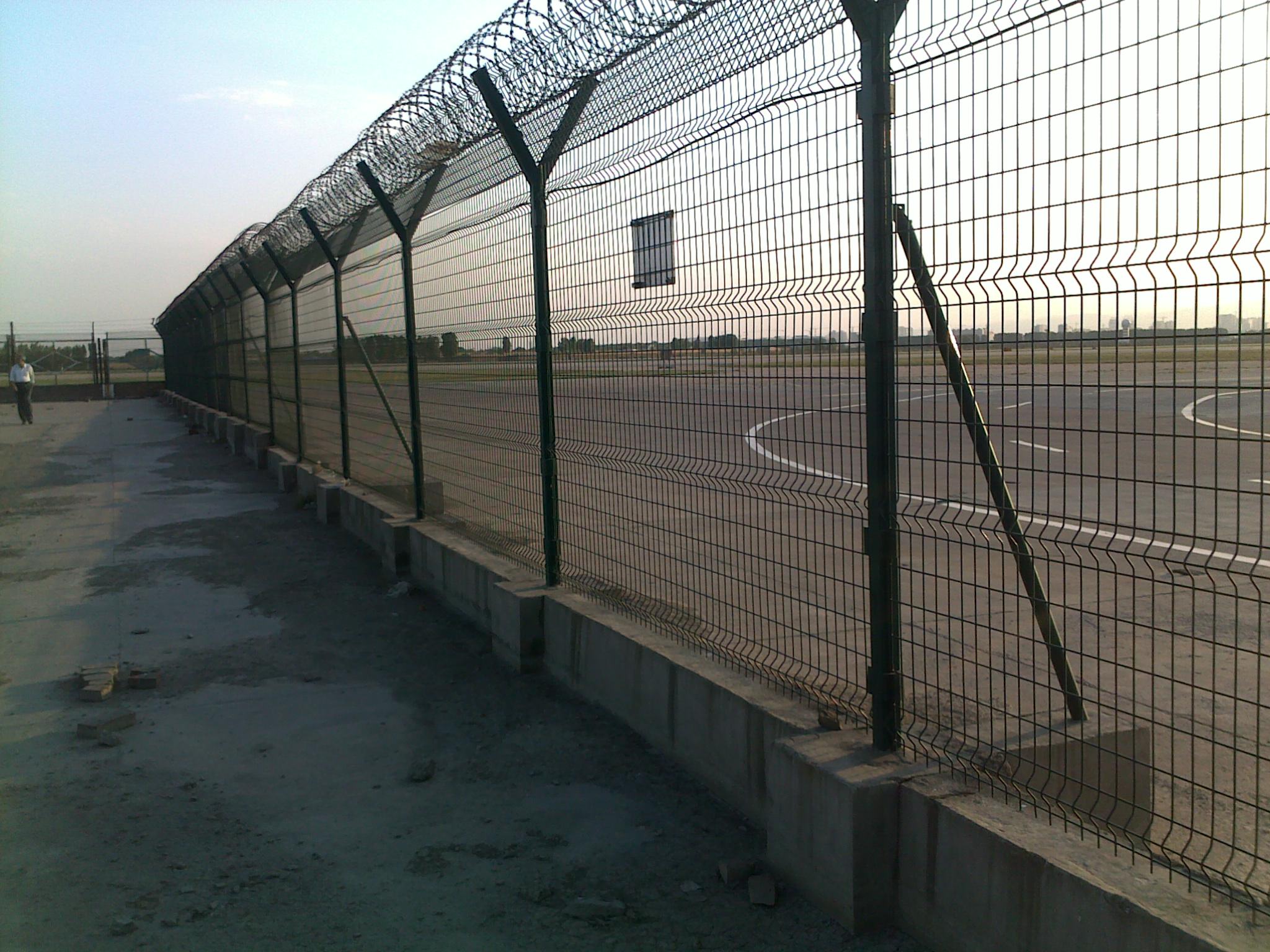 機(jī)場(chǎng)護(hù)欄網(wǎng)又稱作Y型安全防御護(hù)網(wǎng),是由V型支架立柱加強(qiáng)型焊接片網(wǎng),安全防盜連接件和熱鍍鋅刀片刺網(wǎng)組成強(qiáng)度和安全防御性級(jí)別很高,機(jī)場(chǎng)護(hù)欄網(wǎng)被廣泛應(yīng)用在機(jī)場(chǎng)、軍事基地等高安全場(chǎng)所。注意:如果在機(jī)場(chǎng)護(hù)欄網(wǎng)頂部加裝刀片刺絲、刀片刺網(wǎng)后又很好的增強(qiáng)了安全防護(hù)性能。采用電鍍、熱度、噴塑、浸塑等防腐形式,具有很好的抗老化、抗曬、耐腐蝕等特點(diǎn)。機(jī)場(chǎng)護(hù)欄網(wǎng)的造型美觀、花色多樣、既起到圍欄作用,又起到美化作用。由于具有安全性高、防攀爬能力強(qiáng)、網(wǎng)片連接方式采用SBS緊扣件,有效防止人為的破壞性拆卸,橫向四道折彎加強(qiáng)筋,使網(wǎng)面強(qiáng)度顯著增加。