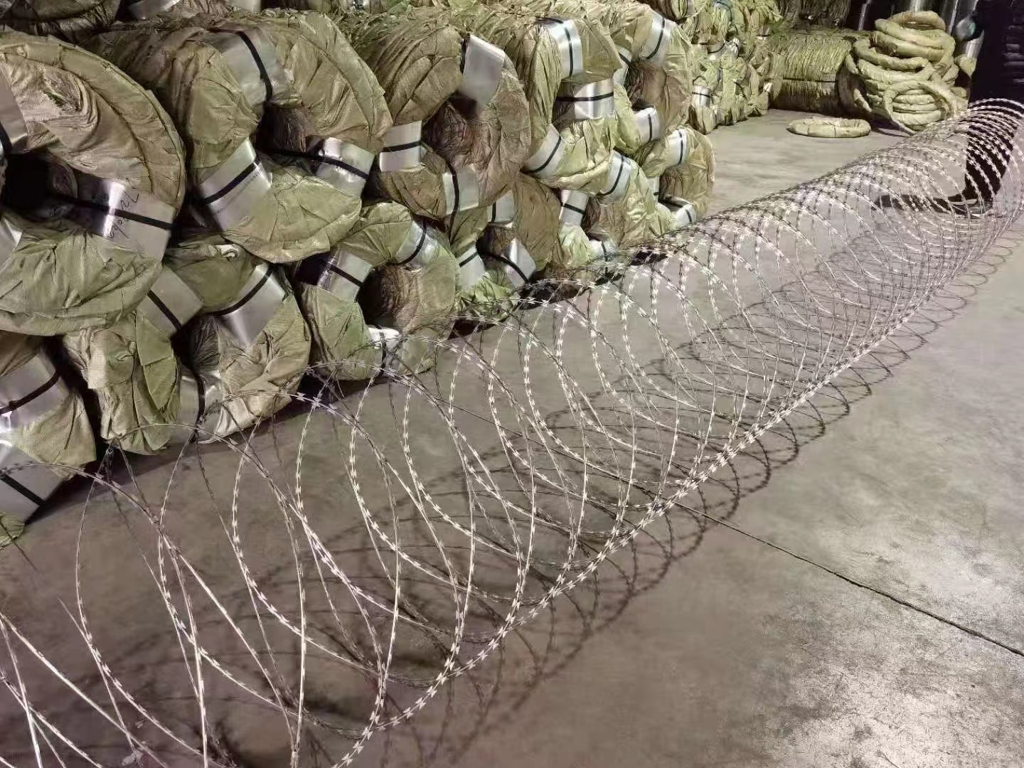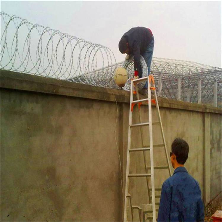 我國(guó)常用的蛇腹形刀片刺網(wǎng)為:刀片形式宜為 BTO-22(芯線直徑 2.5mm±0.1mm,刀片厚 0.5mm±0.05mm,刀片長(zhǎng) 22mm±1mm,刀片寬度 15mm±1mm,刀片間距 36mm±1mm),用于支撐刀刺網(wǎng)的支架伸出刀刺網(wǎng)長(zhǎng)度不應(yīng)大于 50)mm;