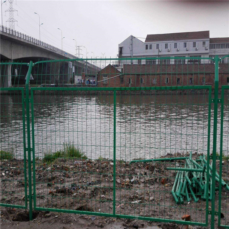河道兩岸防護(hù)圍網(wǎng)是用于河道兩側(cè),保護(hù)河道內(nèi)水環(huán)境,也防止有人進(jìn)入河道造成的生命財(cái)產(chǎn)損失。河道兩岸防護(hù)圍網(wǎng)具有耐用、美觀、視野開(kāi)闊,具有優(yōu)良的隔離性能。網(wǎng)片經(jīng)防腐處理:經(jīng)除銹、打磨、鈍化、硫化等工藝后,采用鍍塑處理,顏色一般為綠色,鍍層厚度為0.5~0.6mm,鍍粉采用抗老化性能較佳的進(jìn)口耐候性樹(shù)脂粉料,鍍層必須顏色一致,表面光滑,不允許有流掛、滴瘤或多余結(jié)塊。鍍件表面應(yīng)無(wú)漏鍍、露鐵等缺陷。
