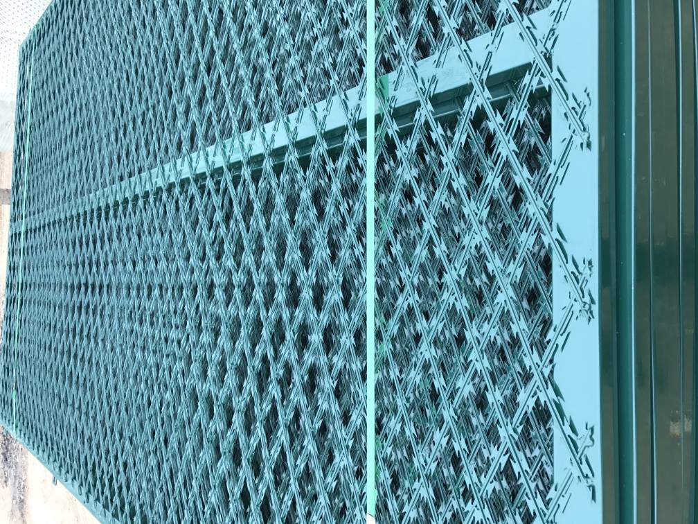 刀片隔離網(wǎng)主要用于園林公寓。刀片隔離網(wǎng)由銳利尖角鍍鋅鋼板或不銹鋼薄板做刀片,高張力鋼絲做芯線組合而成的阻絕器材。直線形刀片刺網(wǎng)由刀片型直線刺網(wǎng)交叉焊接成型。由于刀片刺繩防護(hù)網(wǎng)造形獨特不易觸摸,因而能達(dá)到極好的防護(hù)隔離效果。該產(chǎn)品具有嚇阻效果好,美觀,施工便利,經(jīng)濟實用等優(yōu)異特點。
