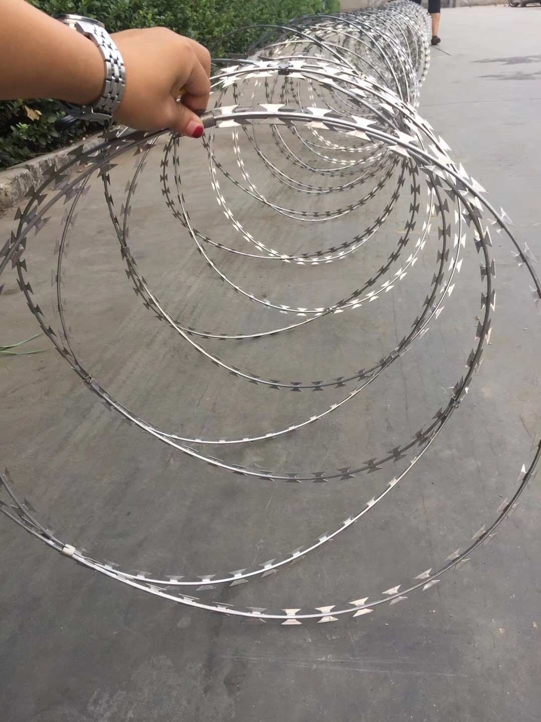 刀片刺絲網(wǎng)是一種新型防護(hù)網(wǎng),該產(chǎn)品具有防阻效果好。美觀,施工便利,經(jīng)濟(jì)實(shí)用等優(yōu)異特點(diǎn)。主要用于園林公寓,機(jī)關(guān)單位,監(jiān)獄哨所,邊防等圈禁防護(hù)。