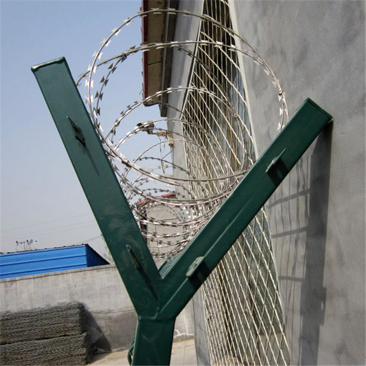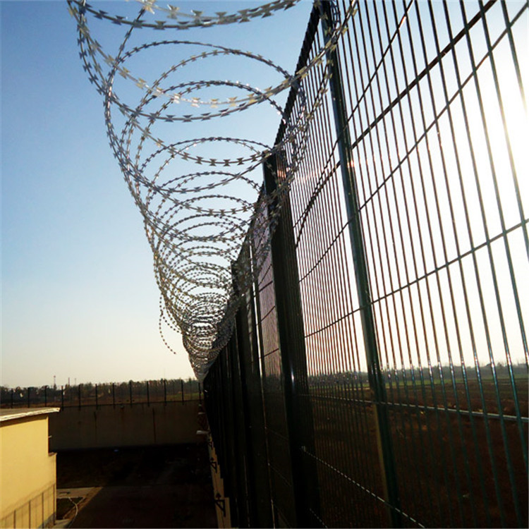 巡邏道和監(jiān)區(qū)安裝蛇腹形刀刺網(wǎng)設(shè)計(jì)都是一樣的。在隔離網(wǎng)一層防攀爬效果的基礎(chǔ)上面,再多一道‘安全墻’,這種刀刺網(wǎng)都是利用鋼板沖出刀片來(lái),用專制卡扣固定在一起。兩個(gè)圈用卡扣固定,這樣拉伸開才是連貫一圈一圈固定在一起。