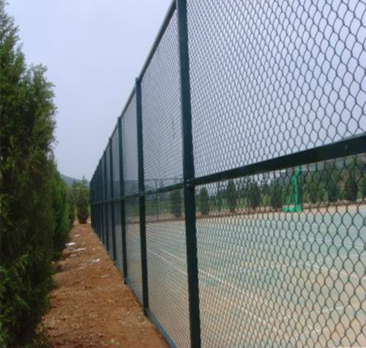 球場(chǎng)圍網(wǎng)網(wǎng)面采用低碳鋼絲,溫度為三百度,用塑料包裹.該方法避免了鋼絲繩氧化破裂的現(xiàn)場(chǎng),有利于防水、防腐.當(dāng)需要安裝時(shí),必須先安裝柵欄,框架應(yīng)該由水平的桿和柱組成.首先,通常安裝一個(gè)列,通常采用嵌入式方法或底盤方法.