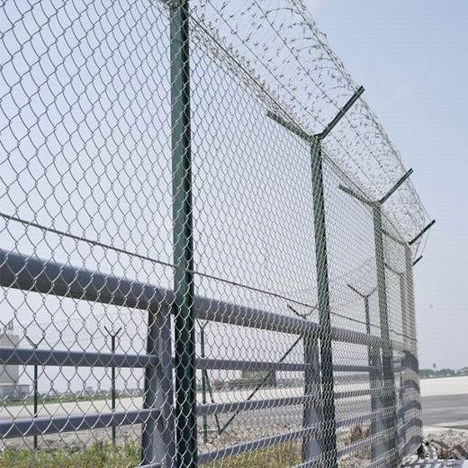 機(jī)場(chǎng)圍欄網(wǎng)是一種用于保護(hù)機(jī)場(chǎng)內(nèi)部安全的關(guān)鍵設(shè)施。它通常由金屬材料制成,具有環(huán)形的網(wǎng)格結(jié)構(gòu)。機(jī)場(chǎng)圍欄網(wǎng)的主要功能是限制人員和動(dòng)物進(jìn)入機(jī)場(chǎng)區(qū)域,同時(shí)阻止未經(jīng)授權(quán)的車輛進(jìn)入,確保機(jī)場(chǎng)的安全性和運(yùn)行順暢。機(jī)場(chǎng)圍欄網(wǎng)的設(shè)計(jì)考慮了多方面的因素。其材料通常使用高強(qiáng)度金屬,如鋼鐵或鋁合金,以提供良好的抗腐蝕和耐久性能。這些特性使得機(jī)場(chǎng)圍欄網(wǎng)能夠承受惡劣天氣條件和外界壓力,確保機(jī)場(chǎng)圍欄的長(zhǎng)期可靠性。