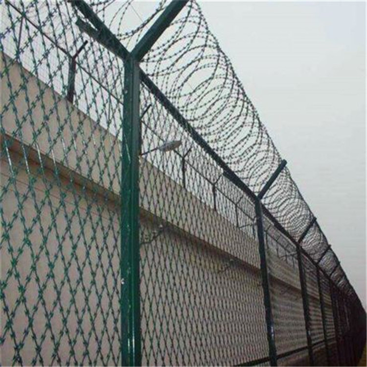 監(jiān)獄圍欄網(wǎng)具有防腐、防老化、抗曬、耐候等特點。螺旋型交叉刀片刺網(wǎng)是在兩條刀片刺網(wǎng)之間以不銹鋼片和鍍鋅鋼片強力夾扣,展開后即呈交叉狀,美觀又實用。
