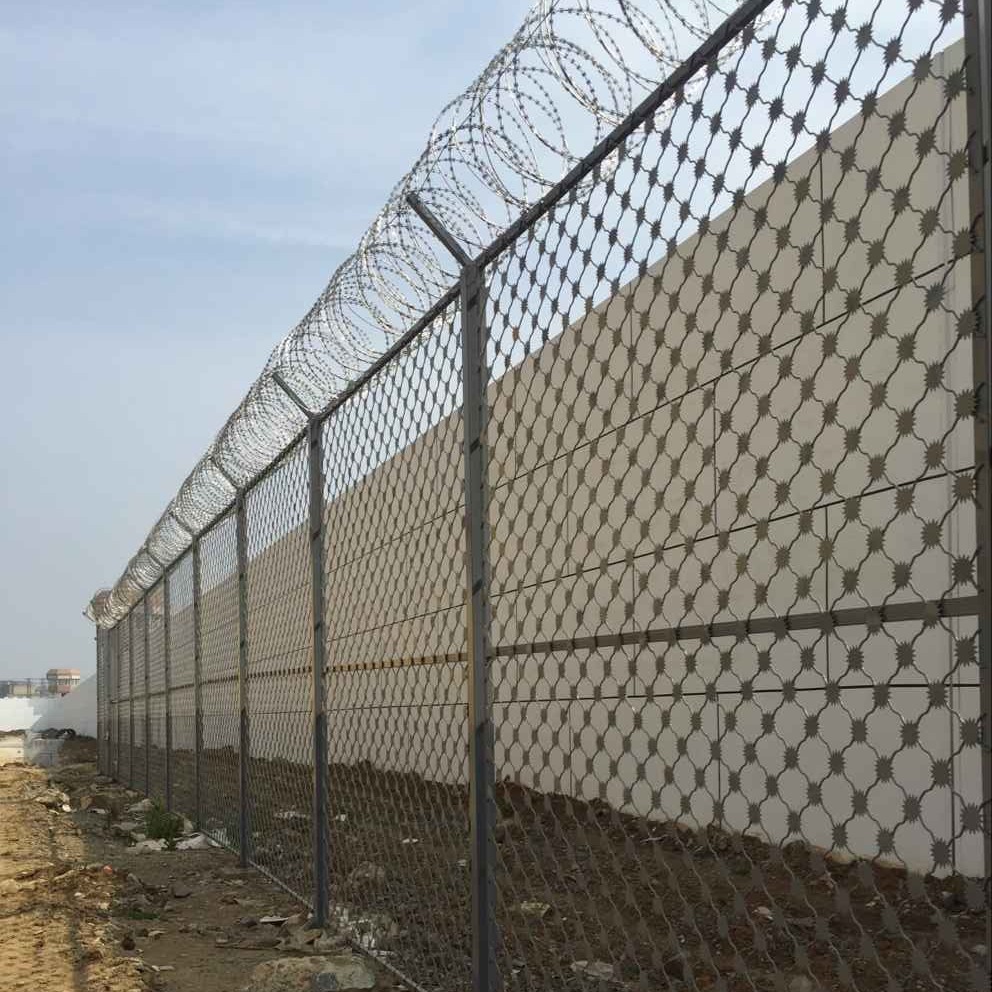 監(jiān)獄梅花刺片防攀爬護欄網(wǎng)也被稱為太陽花刺片監(jiān)獄護欄網(wǎng),它的立柱由鍍鋅鋼管制成,鋼管常為有圓柱114mm*3.0以上也可用80*80的、100*100的方管,此外,監(jiān)獄防攀爬護欄網(wǎng)的Y形柱還配備了不銹鋼刀片剌網(wǎng),并對其表面進行了噴涂。常見的是深綠色噴涂和銀灰色噴涂,看起來高端,簡單而美麗,并且可以起到防腐防銹的作用,還可以起到裝飾環(huán)境的作用。下面就來介紹一下監(jiān)獄防攀爬護欄網(wǎng)的特點以及 結(jié)構(gòu)規(guī)格。