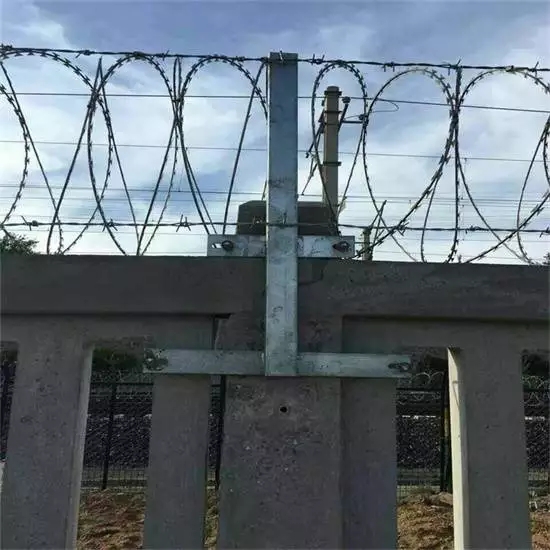 圍墻刀刺網(wǎng)安裝,可根據(jù)圍墻的長度設計需要使用多少根Y字支架,一般以3米的間距為好,把Y字型支架固定在圍墻上面,其中Y字形支架可根據(jù)您的實際情況進行打孔,用膨脹螺絲固定,以此為了安裝刀刺網(wǎng)的時候起到固定的作用。然后刀刺網(wǎng)的Y字支架上兩邊各拉一根鋼絲,并用專業(yè)的卡扣鉗子將卡扣和鋼絲卡緊,對刀刺網(wǎng)加以固定,以免左右搖晃。
