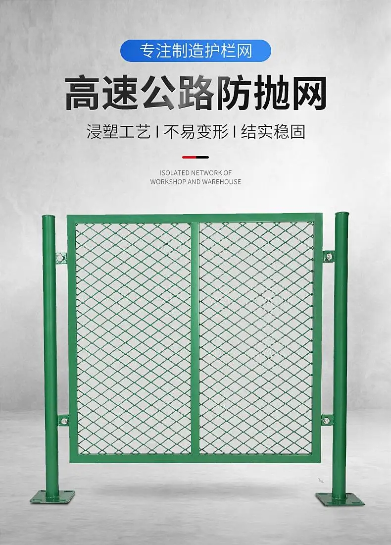 防拋網主要有兩種類型:鋼板網防拋網和焊接網防拋網。鋼板網防拋網的網面通過鋼板沖孔而成,邊框使用角鋼,立柱則采用方管或H型鋼。而焊接網防拋網則與我們之前介紹過的焊接網隔離柵材料相同。