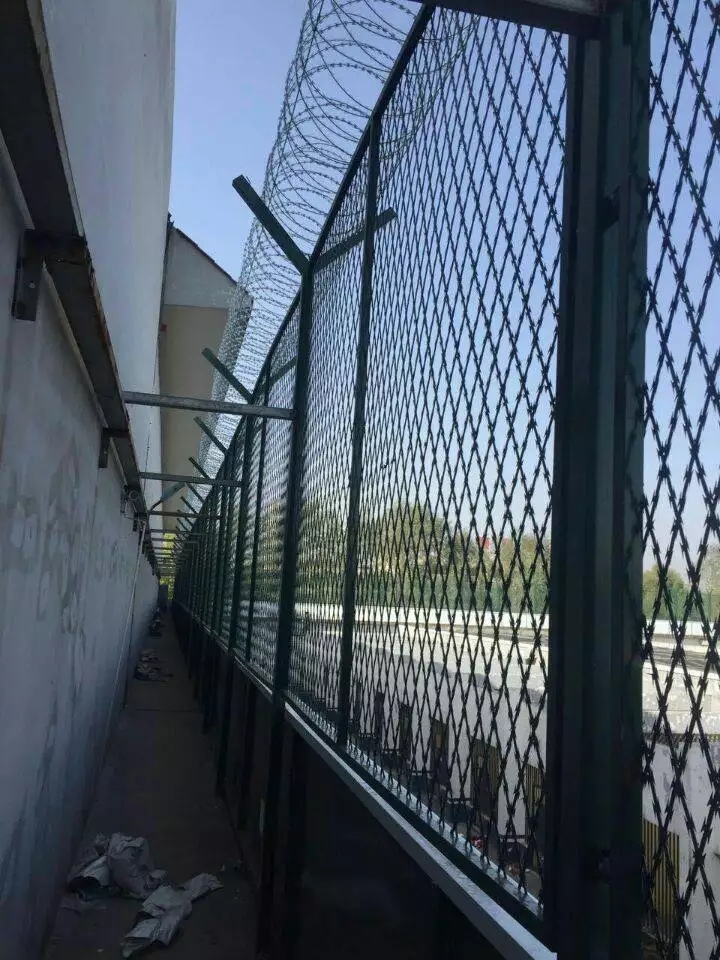 焊接刀片隔離網(wǎng)和蛇腹網(wǎng)結(jié)合使用,使人望而卻步,擊破人的僥幸心理。再眾多隔離網(wǎng)當(dāng)中防攀爬效果突出。常用于監(jiān)獄,哨所,邊防等的圈禁防護。