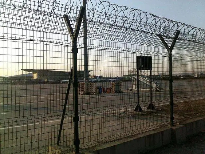 另外,在機場飛行區(qū)隔離網(wǎng)頂部都會設有一個柱狀的圍欄,其主要目的是未來防止人們的攀爬也是為了保障其他人身安全。這里會采用些三角折彎性護欄網(wǎng),在表面設計、防腐層、結(jié)實度方面,都會有一定的特點。機場飛行區(qū)隔離網(wǎng)又稱作“機場護欄”、“Y型安全防御護網(wǎng)",它是由V型支架立拄,加強型焊接片網(wǎng),安全防盜連接件和熱鎮(zhèn)鋅刀片刺籠組成。安全防御性級別很高的隔離柵產(chǎn)品。近年來,被廣泛應用在機場,軍事基地等高安全場所。