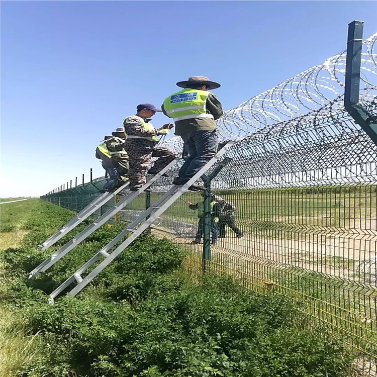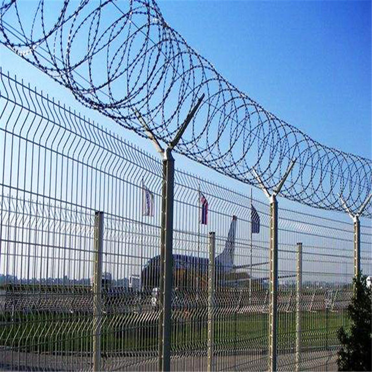 機(jī)場(chǎng)圍界是將機(jī)場(chǎng)飛行控制區(qū)與外界隔離的一道空防安全屏障,機(jī)場(chǎng)圍界通常由鐵柵欄或鐵絲網(wǎng)圍成,它擔(dān)負(fù)著保障飛行控制區(qū)安全的重任。圍界圍欄形式采用鋼筋網(wǎng)結(jié)構(gòu)形式,機(jī)場(chǎng)圍界又稱作“Y型安全防御護(hù)網(wǎng)”,是一種框網(wǎng)結(jié)構(gòu),由折彎網(wǎng)片,V型支架立柱,加強(qiáng)型焊接片網(wǎng),上面有刀片刺繩(又稱刀刺網(wǎng),刀片護(hù)網(wǎng))安全防盜連接件組成強(qiáng)度和安全防御性級(jí)別很高??蚓W(wǎng)結(jié)構(gòu)能夠提供更堅(jiān)固的支撐和更牢固的連接,難以被破壞??蚓W(wǎng)的結(jié)構(gòu)能夠有效地防止通過撞擊、破壞或攀爬等方式跨越,也能提供更好的視野和通風(fēng)效果。