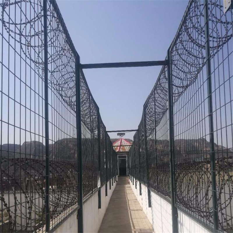 監(jiān)獄圍墻防護(hù)網(wǎng)是非常重要的監(jiān)獄安全防護(hù)設(shè)施,由焊接鋼網(wǎng)加蛇腹形刺網(wǎng)組合而成。監(jiān)獄圍墻防護(hù)網(wǎng)具有結(jié)構(gòu)新穎、鞏固緊密、網(wǎng)面平坦、網(wǎng)孔均勻、鋒鋒利、防攀爬、抗腐蝕性強(qiáng)等特色。建設(shè)于監(jiān)獄的內(nèi)外墻地上及高墻之上,網(wǎng)墻內(nèi)側(cè)或頂部加裝蛇腹形刺網(wǎng),形成一道高不可攀、難以逾越的阻隔妨礙。合作高壓沖擊電網(wǎng)、各種監(jiān)控報(bào)警設(shè)備確保監(jiān)獄安全滿有把握。