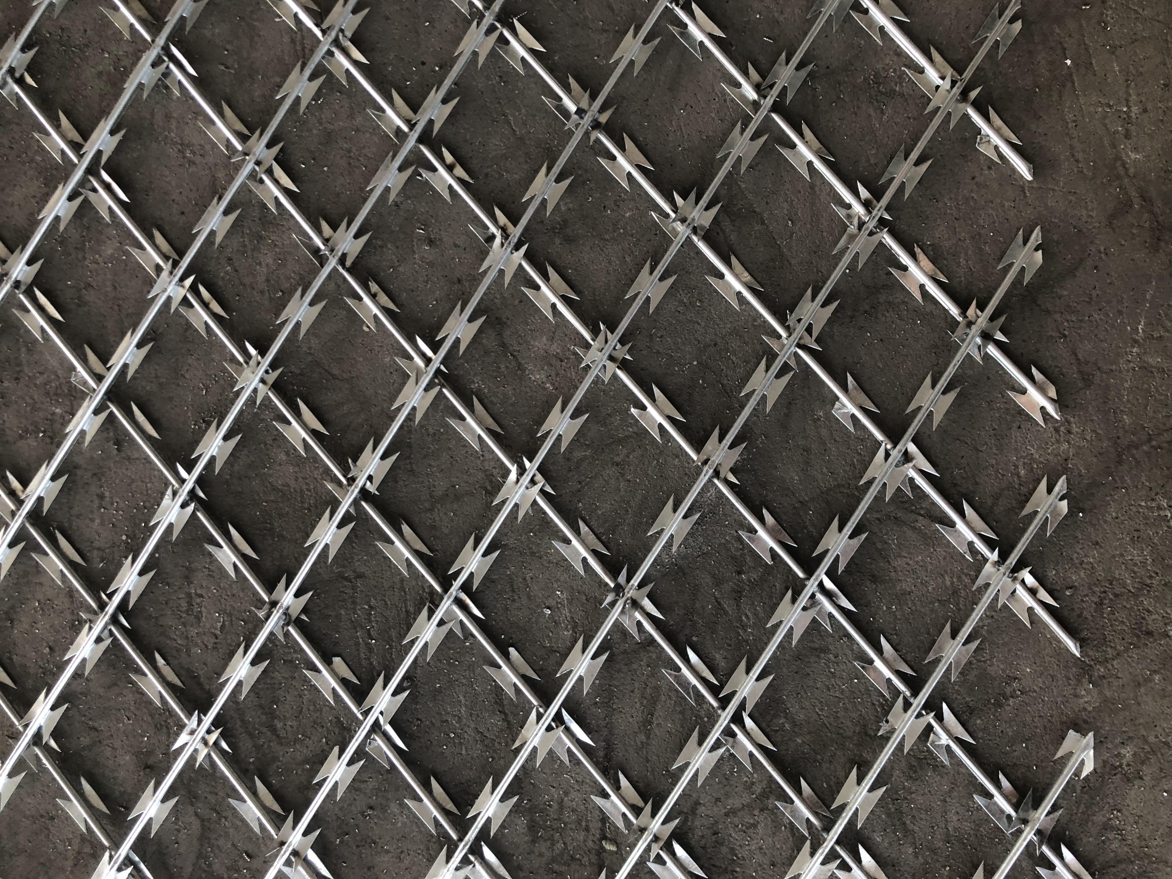 焊接片刺網(wǎng)由刀片型直線刺網(wǎng)交叉焊接成型,可用于防盜窗、高速護(hù)欄、隔離柵。施工迅速、效果顯著,有多種架設(shè)方式可供選擇,既省經(jīng)費(fèi),又可達(dá)到嚇阻的效果。長度和直徑可依客戶要求制作。