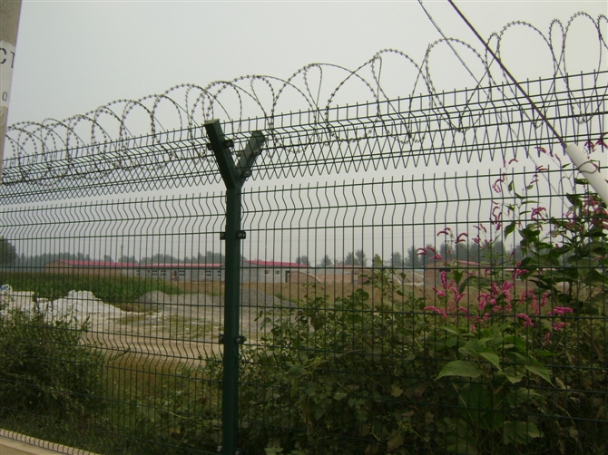 大家都特別關(guān)注機場圍界網(wǎng)的使用年限問題,因為機場圍界網(wǎng)的價格特別高,所以使用壽命也在是十幾年左右。俗話說一分錢一分貨真的沒錯,機場圍界網(wǎng)的原材料一般都是由塑后6mm的絲焊接而成的,網(wǎng)孔一般是50*100mm,而且有四道加強筋起加強的作用。高度一般也在2.4M以上,并且都含刀片刺繩。因此又被叫作“Y型安全防御護網(wǎng)”,是由V型支架立柱,加強型焊接片網(wǎng),安全防盜連接件和熱鍍鋅刀片刺網(wǎng)組成。所以以上原因造就了機場護欄不僅使用壽命極長,而且防御系數(shù)非常高。