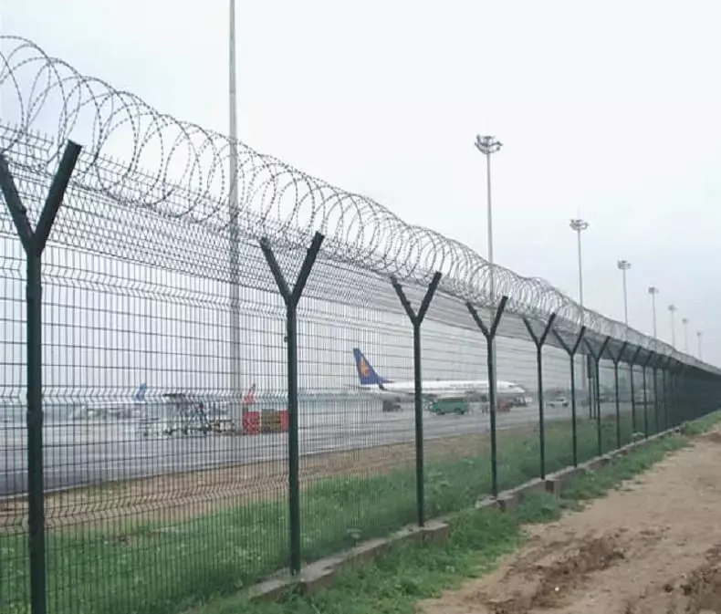 飛機(jī)場隔離網(wǎng)或機(jī)場圍欄,是保護(hù)機(jī)場邊界安全,讓飛機(jī)起飛更加順利的重要措施,因其由V型支架立柱、加強(qiáng)型焊接片網(wǎng)、安全防盜連接件和熱鍍鋅刀片刺籠組成可以有效防止行人攀爬跨越,可以提高安全防御,被應(yīng)用在飛機(jī)場上。