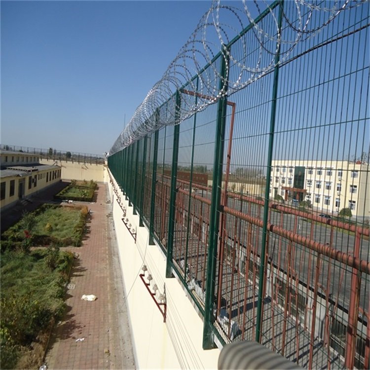 頂部:必須設(shè)置向內(nèi)傾斜45°-60°的防攀爬刺網(wǎng)或刀片刺繩圈,這是標(biāo)準(zhǔn)配置,有效防止翻越。
