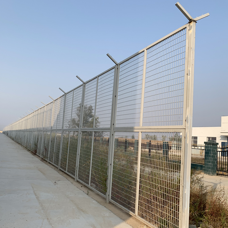 拘留所隔離網(wǎng)由網(wǎng)片,立柱,刀刺網(wǎng)組合而成,監(jiān)獄隔離網(wǎng)網(wǎng)片通常四周焊接邊框以增加整體的剛度和防護(hù)力度,網(wǎng)孔以50x200mm, 50x100mm的長(zhǎng)方孔和50x50mm的正方孔為常見,材料多為直徑為5.0mm, 6.0mm的低碳鋼絲或鍍鋅絲焊接而成,四周的邊框一般為方鋼, 規(guī)格可根據(jù)實(shí)際的網(wǎng)片大小而定,如20x30mm,30x30mm,40x40mm, 30x50mm等 ,邊框的左右兩側(cè)一般會(huì)焊接側(cè)邊耳鋼板,以便于和兩側(cè)的立柱相連接。