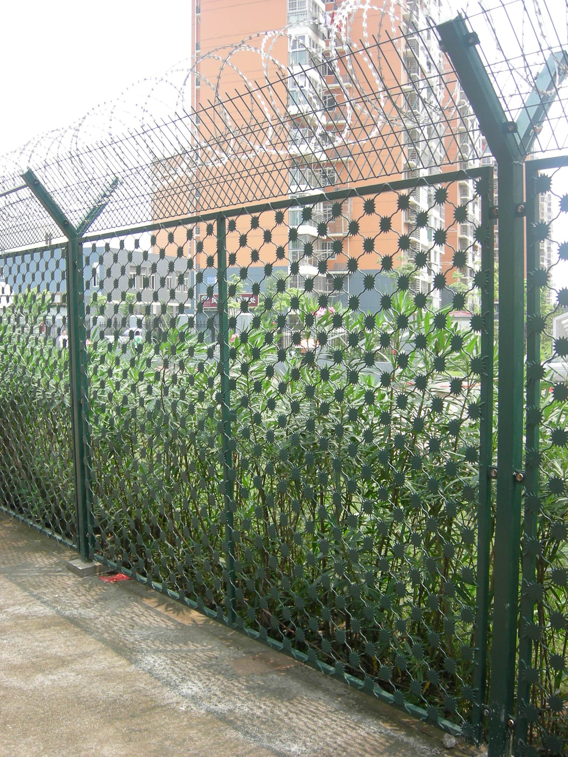 拘留所隔離網(wǎng)頂部蛇腹型刀刺網(wǎng)的材質(zhì)和安裝方法:蛇腹式刀刺網(wǎng)(也叫螺旋式刀刺網(wǎng))材質(zhì):熱鍍鋅,不銹鋼304,不銹鐵。目前我國(guó)的絕大部分監(jiān)獄看守所 已經(jīng)淘汰了鍍鋅刀刺網(wǎng),選用不銹鋼304材質(zhì),解除了兩年-銹三年一換的后顧之憂。刀刺網(wǎng)外圈徑:中500mm, 中600mm,中800mm,根據(jù)圈徑的不同, 對(duì)應(yīng)每米的使用量也不相同,所以核算到每延米的價(jià)格也會(huì)有差別。