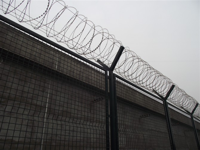 鋼網(wǎng)墻刀刺網(wǎng)由于其高墻的防攀爬效果正在更多的被人們應用到監(jiān)獄系統(tǒng),在安裝過程中一定要注意刀刺的鋒利性,穿戴防護措施以避免被刀刺劃傷