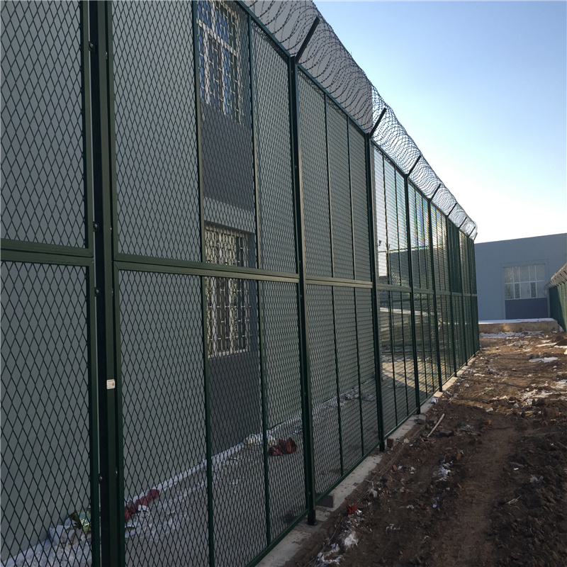 監(jiān)獄巡邏道鋼網(wǎng)墻V型頂端安裝刀片刺網(wǎng),直徑采用50cm-60cm刀片刺網(wǎng)主要是由熱鍍鋅鋼板或不銹鋼薄板沖壓而成的,它擁有尖銳的刀片,高張力鍍鋅鋼絲或者不銹鋼絲做芯線組合而成的產(chǎn)品。使得犯人無(wú)力翻越監(jiān)獄巡邏道鋼網(wǎng)墻。我們艾瑞金屬擁有豐富的產(chǎn)品生產(chǎn)及設(shè)計(jì)經(jīng)驗(yàn),為許多的監(jiān)獄和看守所生產(chǎn)過(guò)產(chǎn)品,我們的產(chǎn)品贏得了廣大新老客戶(hù)的一致好評(píng),歡迎來(lái)廠或來(lái)電咨詢(xún)產(chǎn)品。