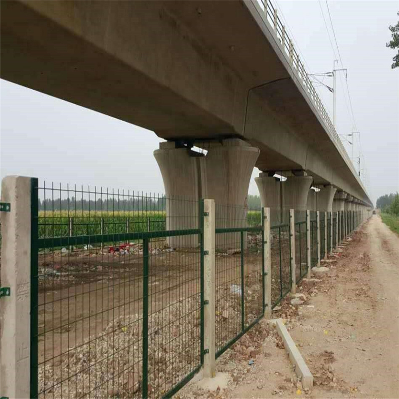 鐵路線路防護柵欄適用于新建鐵路工程封閉,在建鐵路工程和既有鐵路工程改造。防護柵欄設計時速200KM以下的鐵路,一般地段采用1.8米高度鋼筋混凝土防護柵欄和金屬網(wǎng)片防護柵欄,重點區(qū)段含動車徑路采用1.8米高度鋼筋混凝土防護柵欄加0.5米熱鍍鋅刺絲滾籠 ,鐵路線路防護柵欄應設置在圍地界以內(nèi)0.5米處;時速200KM以上采用2.7米高度鋼筋混凝土防護柵欄和金屬網(wǎng)片防護柵欄,安裝重點同上。艾瑞金屬提供刺繩、支架、卡扣、鍍鋅綁絲等配件,價格合理,質(zhì)量有保證。