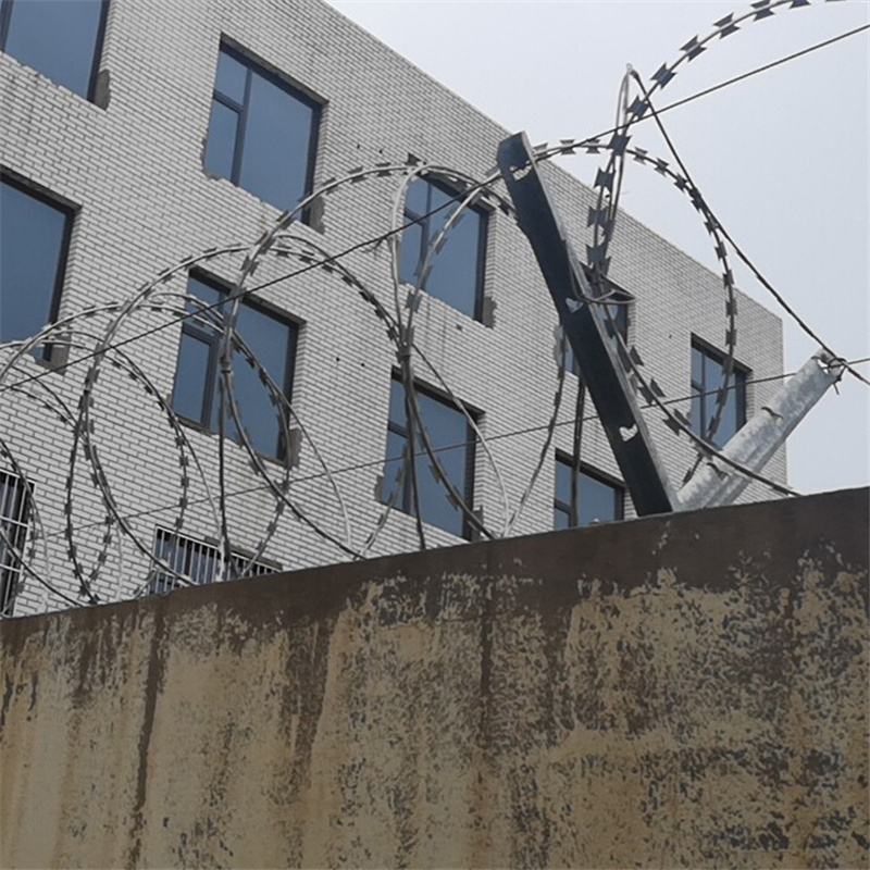 圍墻為了起到防盜的作用也是有很多的變化,從最開始在上面布置玻璃碎片到現(xiàn)在使用刀片刺繩等等,更加簡單更加強(qiáng)悍的防護(hù)效果保障了公民的生命和財產(chǎn)安全,說一下刀片刺繩的安裝方法:刀片刺繩每2圈有3-7個卡扣,而且是圈圈相卡,拉開以后形成螺旋狀,拉伸的時候注意一定要帶防護(hù)手套,預(yù)防劃傷。拉開的時候只需要固定刺網(wǎng)的一邊,然后向相反方向拉開就行,注意孔的間距不要太大,不然影響美觀效果。收的時候只要慢慢的送回去就行,操作簡單,施工便利。