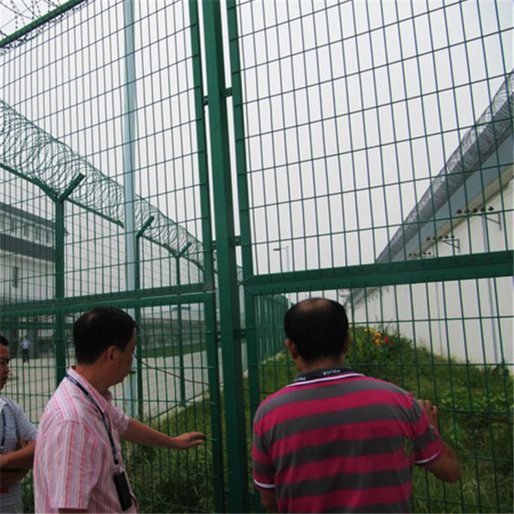 質,然后在進行塑料包裹處理,也就是常說的靜電噴涂和浸塑處理。監(jiān)獄隔離網(wǎng)頂部必須安裝防止跨越的蛇腹型刀刺網(wǎng),立柱規(guī)格不得小于