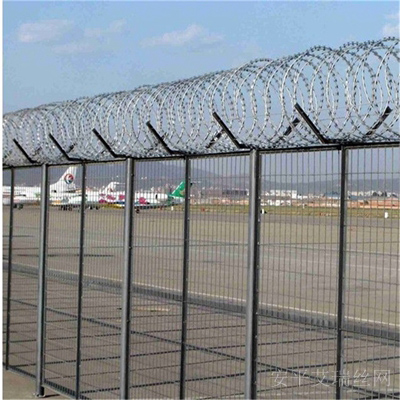 機(jī)場專用護(hù)欄網(wǎng)是由安全防盜連接件和熱鍍鋅刀片刺籠組成的,具有高強(qiáng)度和高安全防御性的隔離柵產(chǎn)品。近年來,機(jī)場圍欄網(wǎng)已被廣泛應(yīng)用于機(jī)場、軍事基地等高安全場所。在機(jī)場圍欄網(wǎng)頂部加裝刀片刺絲、刀片刺繩后,可有效增強(qiáng)安全防護(hù)性能。