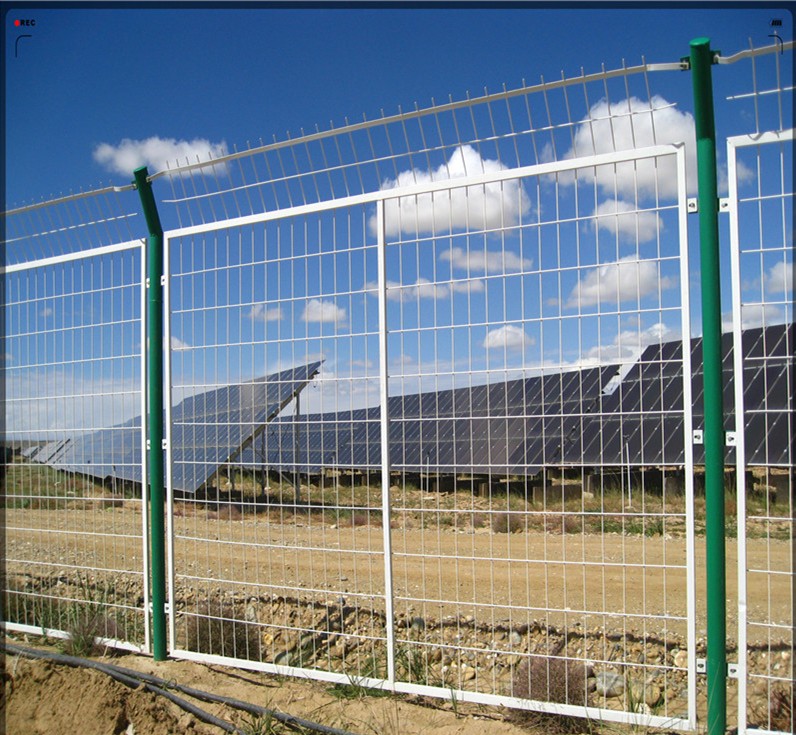 光伏電站護(hù)欄網(wǎng)采用優(yōu)質(zhì)低碳鋼絲作為原材料,表面浸塑具有日久抗腐蝕、抗紫外線不怕雨淋的特點。是專門為光伏電站設(shè)計的防護(hù)設(shè)備,主要是用在光伏電站各個區(qū)域的防護(hù)和隔離。它有效防止了光伏電場內(nèi)外的人身安全和變電器等設(shè)備的防盜,是電站首選的防護(hù)產(chǎn)品。具有較長的使用年限。