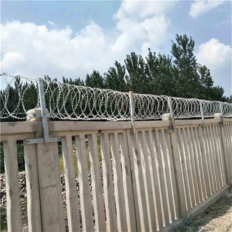 刺絲滾籠是在兩條刀片刺網(wǎng)之間以不銹鋼片和鍍鋅鋼片強力夾扣,展開后即呈交叉狀,具有防腐、防老化、抗曬、耐候等特點。