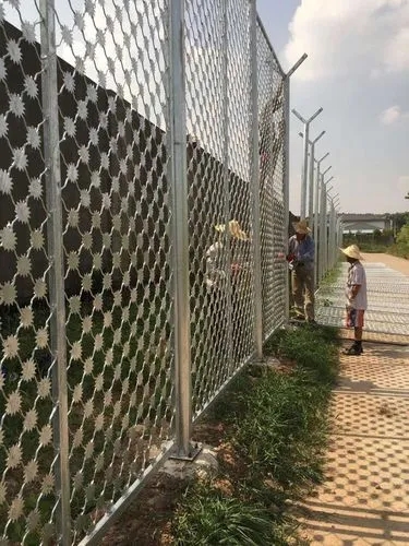 巡邏隔離網(wǎng)由:鋼絲網(wǎng)片、立柱、刀片刺網(wǎng)組成。