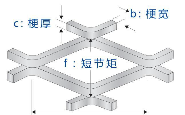 咱們平時(shí)看到的焊接網(wǎng)和編織網(wǎng)有絲的直徑(例如絲徑是4mm,說的是鐵絲的直徑是4mm的)而鋼板網(wǎng)就不一樣嘍!不能簡(jiǎn)單的用絲徑來表示了,鋼板網(wǎng)不是圓形的不能用直徑來表示,它是由梗寬和梗厚組成的,鋼板網(wǎng)梗寬和梗厚:包括了梗的寬度和梗的厚度,梗寬指鋼板網(wǎng)菱形孔的邊左右量的寬度;鋼板網(wǎng)梗厚就是鋼板網(wǎng)菱形孔的邊上下量的厚度,是兩大必須要掌握的參數(shù)。
